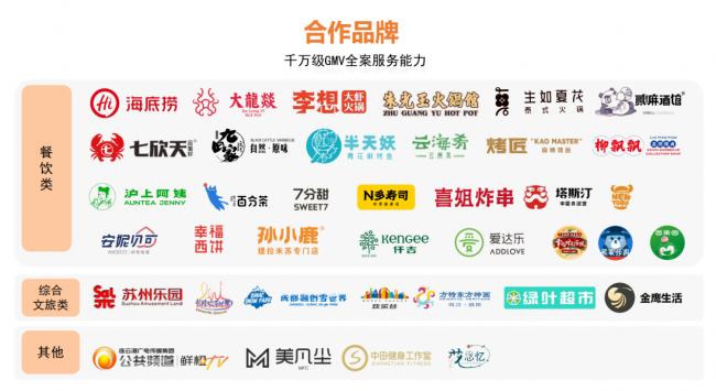 中大型品牌企业:房地产、大宗消费、连锁品牌、制造业龙头,需要品牌全案运营、矩阵搭建、品效合一营销,保量指标聚焦精准留资量、品牌曝光量、直播转化量