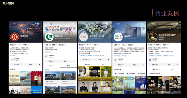 • 苏南绿城 / 昆山绿地滨江 / 苏州万科等房企系列:房企系列账号运营,保量精准留资量完成率 120%,单账号最高获赞 6.1 万、粉丝 2.1 万,实现楼盘精准推广与客户留资; • 苏州中心商场:保量同城曝光量完成率 200%,结合商场活动打造特色内容,实现线上流量向线下客流的高效转化,提升商场品牌影响力。