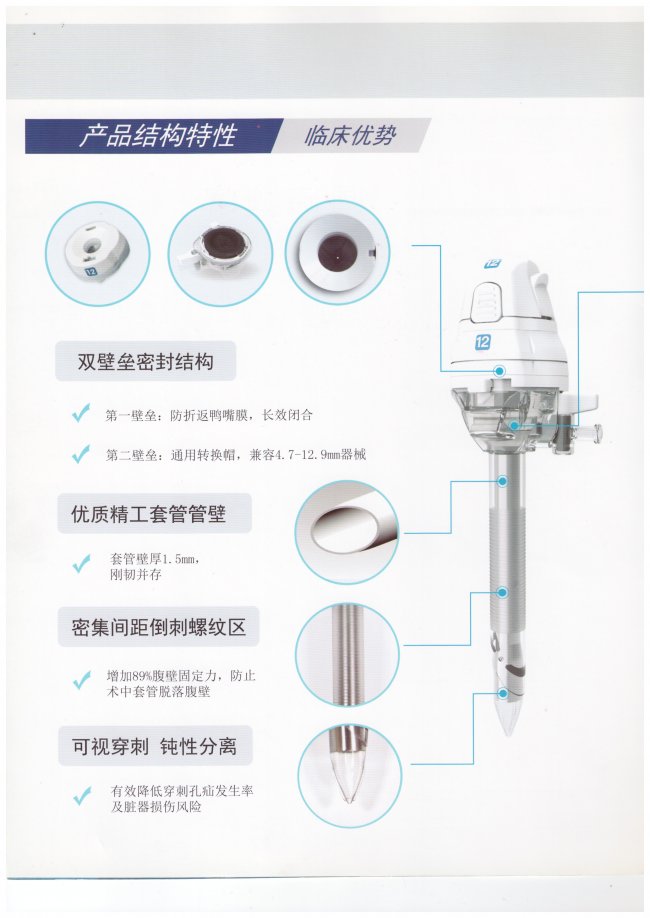 在临床性能上,卓医卫升级版穿刺器表现同样亮眼,不仅气密效果优异,漏气率<0.5L/min,器械进出阻力值远低于国内同类产品,实现器械进出流畅的使用体验,还拥有多项国产独家创新功能。其搭载的刮吸血污设计可实现一次置镜,减少手术操作步骤,助力医护人员解放双手;专为胃肠外科打造的专属款穿刺器,穿刺套管可顺利通过胃肠外科专用吻合器,精准匹配专科手术需求,填补了国产胃肠外科专用穿刺器的市场空白。