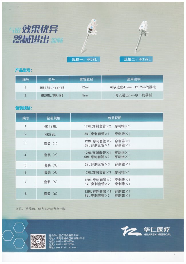 为满足不同临床手术的多样化需求,卓医卫一次性套管穿刺器推出HR12ML/MM/MS、HR5ML/MM/MS两大核心型号,套管直径分别为12mm和5mm,可分别适配4.7-12.9mm器械及5mm以下器械的操作需求。同时,产品提供单型号独立包装与多款组合套装共8种包装规格,从单支5ML/12ML穿刺套管到多规格组合套装,全面覆盖不同手术场景的器械使用需求,型号MM、MS与ML保持一致的包装规格,进一步提升临床使用的便捷性。